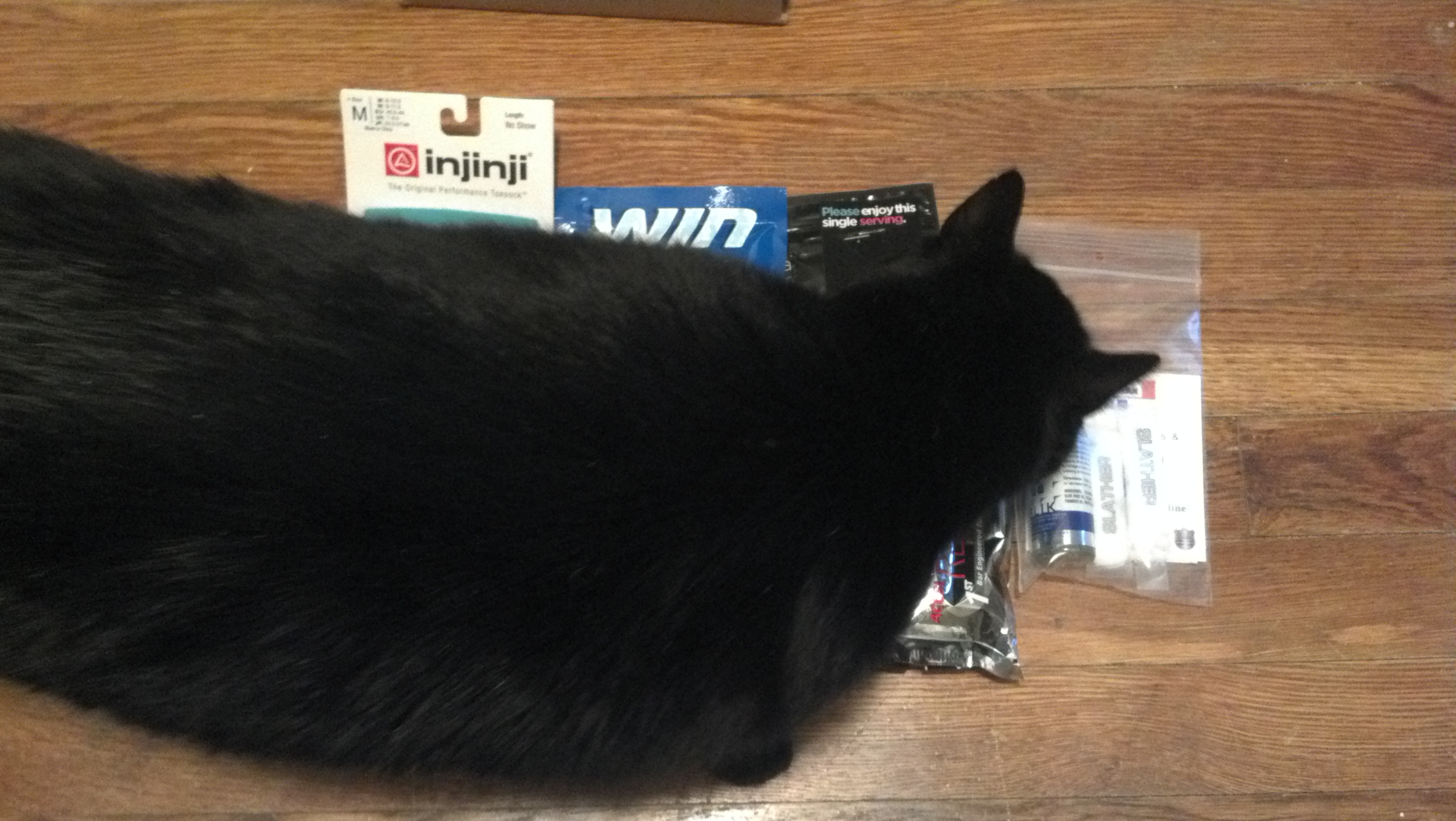 I just received my second TriBox from RunnerBox. From what I’ve seen online, the TriBox is similar to the RunnerBox, and has a lot of the same products, but also has a few things geared specifically towards swimming or biking. Since I’m newer at both of those sports, I like getting to try different products.